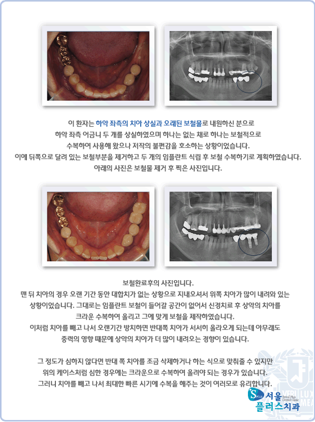 [임플란트] 하악 좌측의 치아 상실과 오래된 보철물