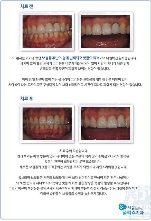[치아성형] 보철물 주변이 검게 변색되고 잇몸이 퇴축