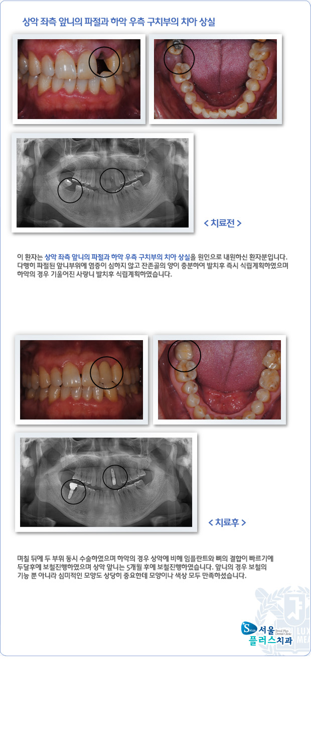 [임플란트] 상악 좌측 앞니의 파절과 하악 우측 구치부의 치아 상실